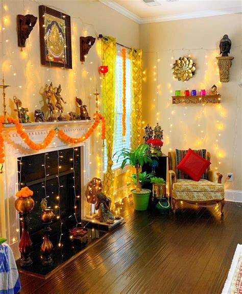 The puja room holds great significance during Diwali as it is a time for prayers and seeking blessings. Decorate your puja room with fresh flowers, diyas, and incense sticks. You can also hang string lights or decorative garlands to add a festive touch. Keep the ambiance serene and peaceful, ensuring it is a perfect space for reflection and devotion.